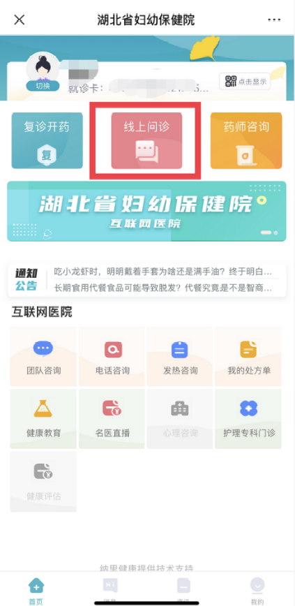 湖北省妇幼保健院互联网医院可实现在线问诊、复诊开药、药师咨询、护理咨询等服务。