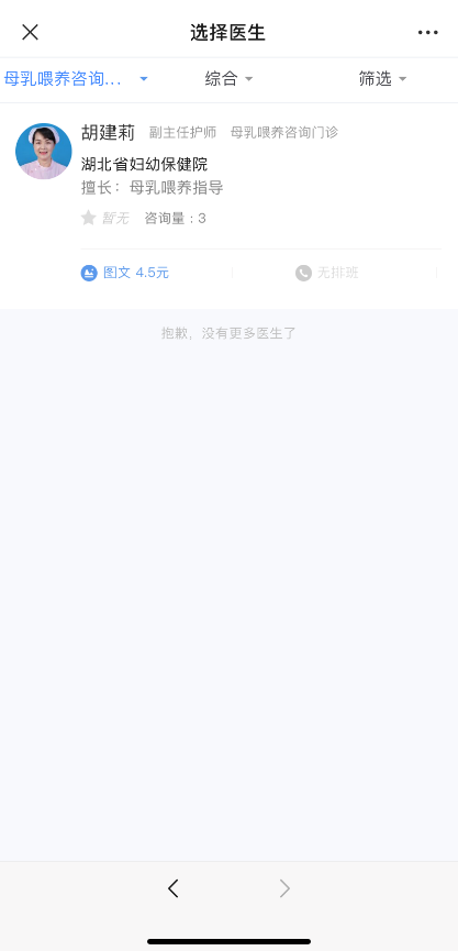 如果新手宝爸宝妈对于新生儿护理及母乳喂养等有需求,可选择「护理咨询」,线上有经验丰富的护师为您排忧解难。