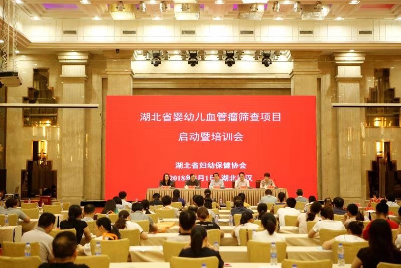 2018年8月1日,湖北省婴幼儿血管瘤筛查项目启动暨培训会在武汉市召开。会议由湖北省妇幼保健协会主办、湖北省妇幼保健院协办。湖北省妇幼保健协会秘书长、湖北省妇幼保健院党委委员阎炯到会并致辞。湖北省妇幼保健院宣传与健康促进部主任周建跃、保健部主任代国红、事业拓展部副主任陈明、皮肤科主任邹晓燕出席开幕式。湖北省八个地市州及所辖县妇幼保健院的80余名医务人员参会。