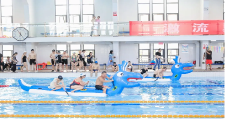 与往届游泳比赛不同,今年的活动在保留经典项目的基础上,创新性地加入了水上竞渡和水上篮球两个趣味横生的新环节,为现场增添了更多欢乐与激情。