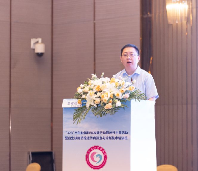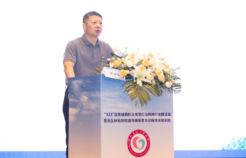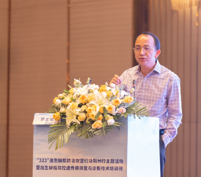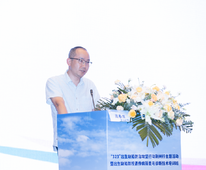 荆州市卫生健康委党组成员董军涛书记发表了讲话。董军涛书记表示很荣幸能在荆州召开湖北省“323”攻坚出生缺陷防治荆州行主题活动暨出生缺陷防控遗传病筛查与诊断技术培训班,热烈欢迎各位专家及与会者来到荆州学习与交流。董军涛书记介绍了荆州市卫生健康委在出生缺陷防治方面开展的各项工作,并表示希望以本次大会为契机,与各地专家同道交流、学习,进一步提高荆州市的出生缺陷防治水平。