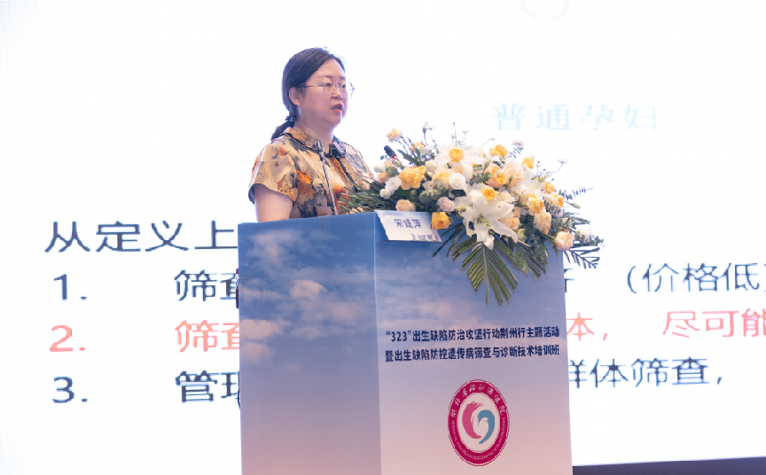 大会主席、湖北省妇幼保健院医学遗传中心宋婕萍主任从产前筛查技术的发展历程入手,介绍了各类产前筛查方案及技术的特点,并着重介绍了孕早期联合筛查方案的筛查流程、优势及循证医学证据。宋主任还针对各位同道疑问较多的血清学筛查质量控制问题答疑解惑,详尽讲解了血清学筛查质量控制的流程及各个环节的要点。